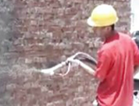 七彩貝殼SG3000A型砂漿噴涂機(jī)安徽阜陽(yáng)工地噴涂現(xiàn)場(chǎng)